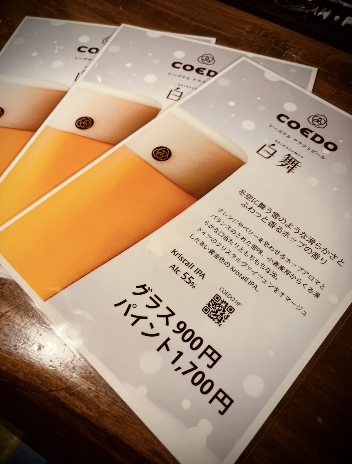 ※本日のCOEDOビール樽生/白舞-クリスタル IPA-