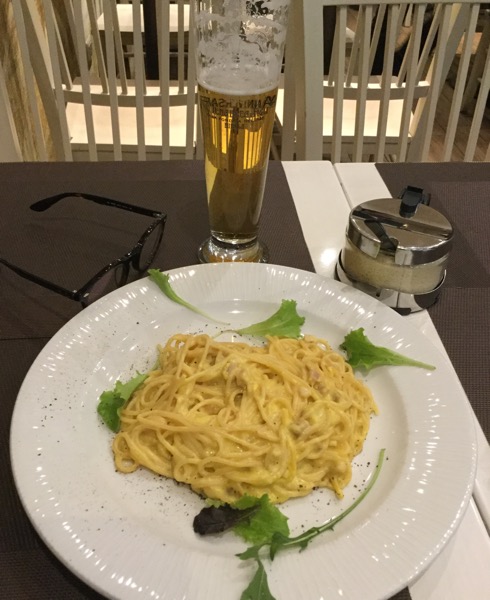 In addition, had pasta for lunch, pizza for dinner. It’s the typical style of Italy.